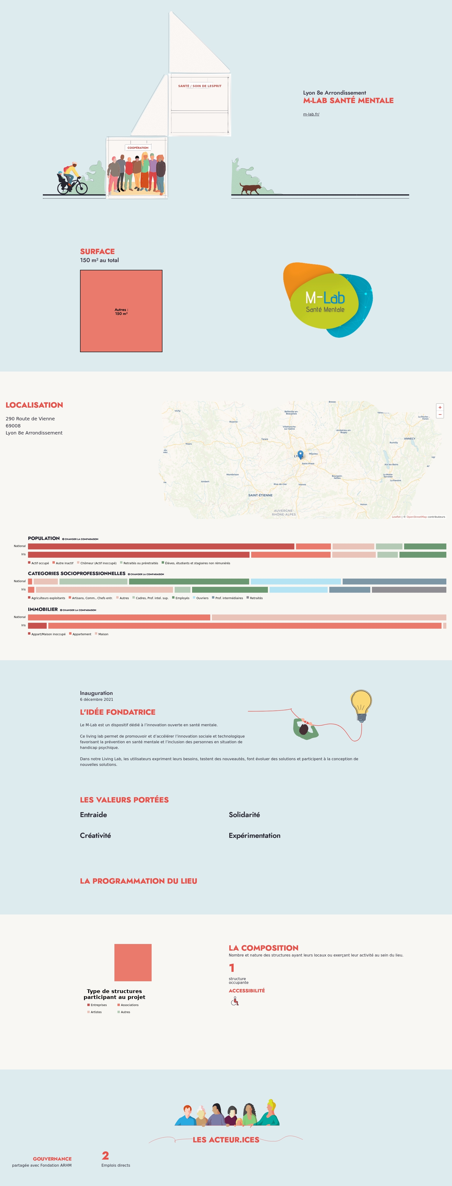Nombre et nature des structures ayant leurs locaux ou exerçant leur activité au sein du lieu.