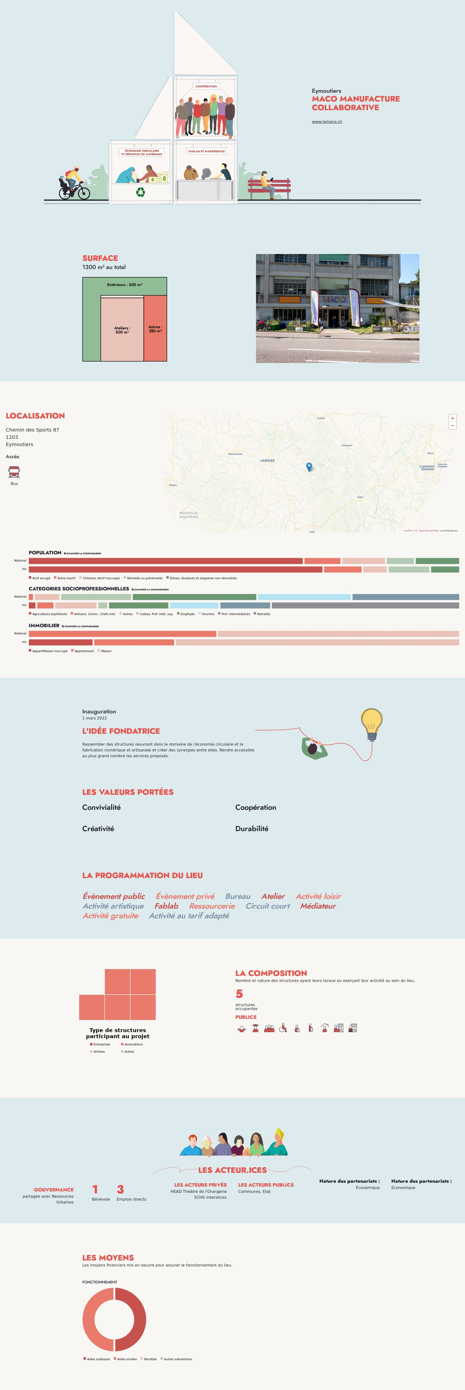 Nombre et nature des structures ayant leurs locaux ou exerçant leur activité au sein du lieu.