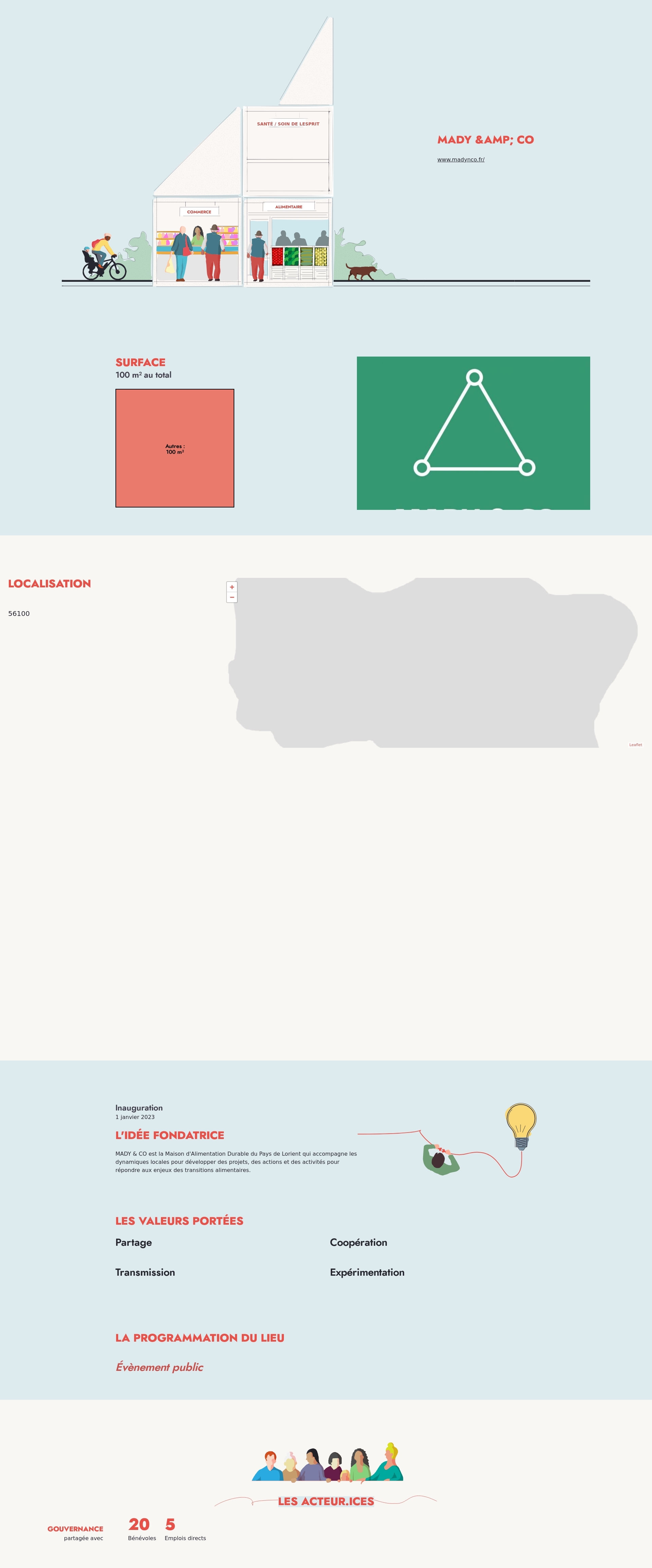 MADY & CO est la Maison d'Alimentation Durable du Pays de Lorient qui accompagne les dynamiques locales pour développer des projets, des actions et des activités pour répondre aux enjeux des transitions alimentaires.