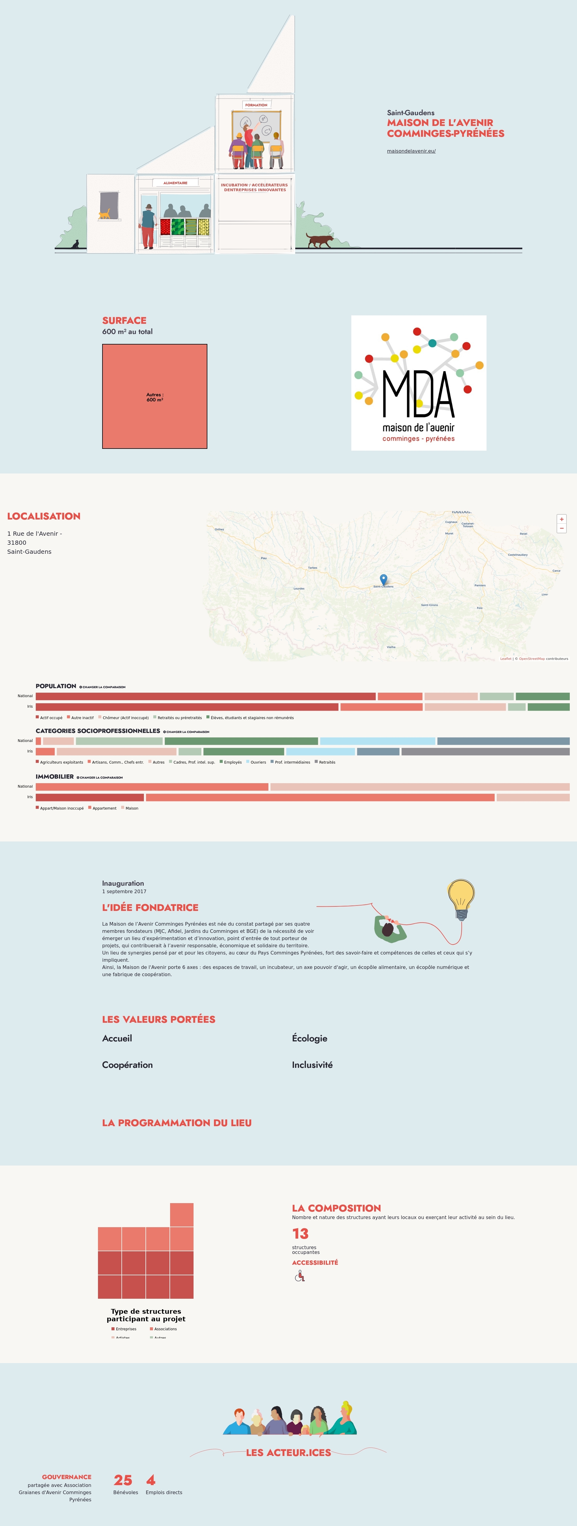 Ainsi, la Maison de l'Avenir porte 6 axes : des espaces de travail, un incubateur, un axe pouvoir d'agir, un écopôle alimentaire, un écopôle numérique et une fabrique de coopération.