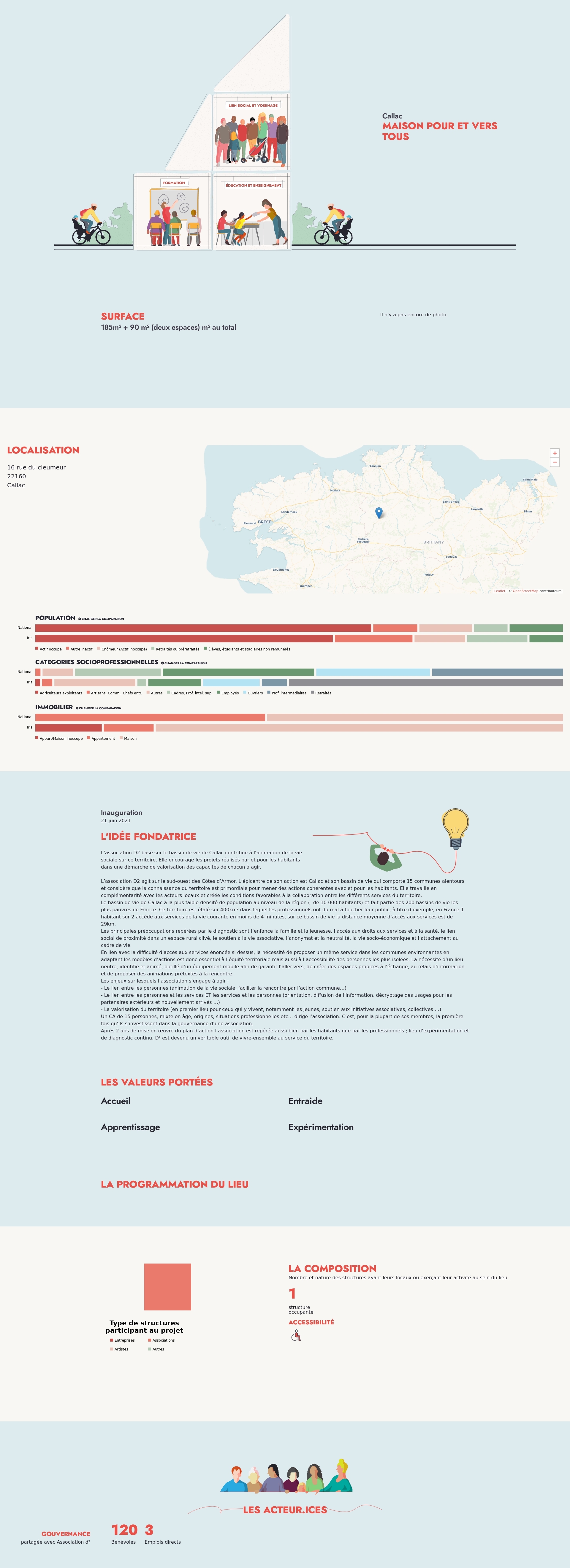 L’association D2 agit sur le sud-ouest des Côtes d’Armor. L’épicentre de son action est Callac et son bassin de vie qui comporte 15 communes alentours et considère que la connaissance du territoire est primordiale pour mener des actions cohérentes avec et pour les habitants. Elle travaille en complémentarité avec les acteurs locaux et créée les conditions favorables à la collaboration entre les différents services du territoire.