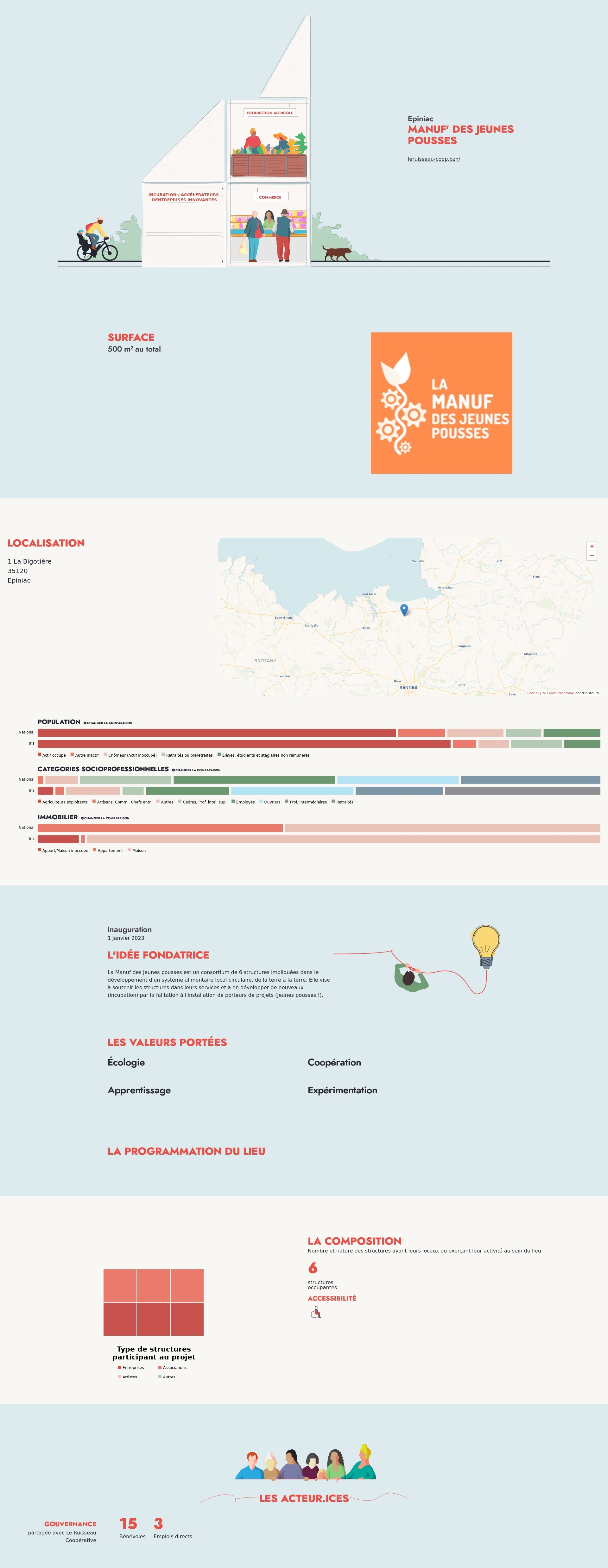 La Manuf des jeunes pousses est un consortium de 6 structures impliquées dans le développement d'un système alimentaire local circulaire, de la terre à la terre. Elle vise à soutenir les structures dans leurs services et à en développer de nouveaux (incubation) par la falitation à l'installation de porteurs de projets (jeunes pousses !).
