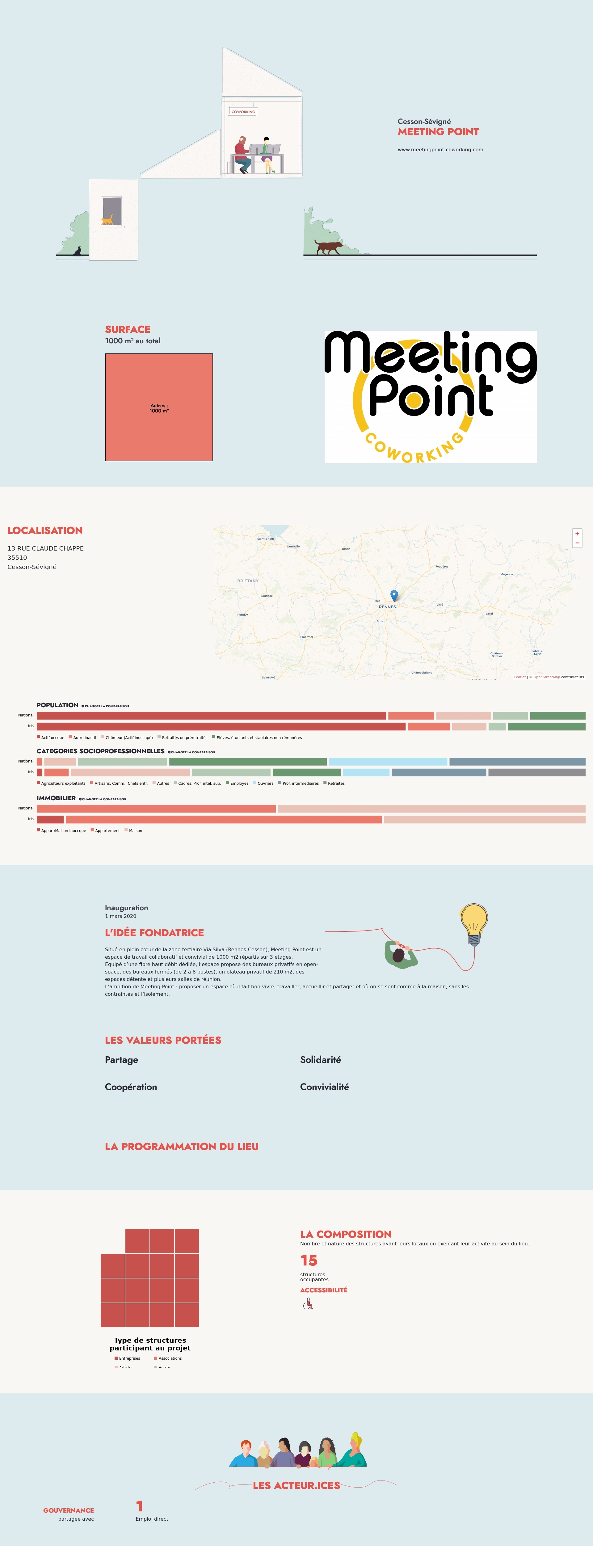 Situé en plein cœur de la zone tertiaire Via Silva (Rennes-Cesson), Meeting Point est un espace de travail collaboratif et convivial de 1000 m2 répartis sur 3 étages.