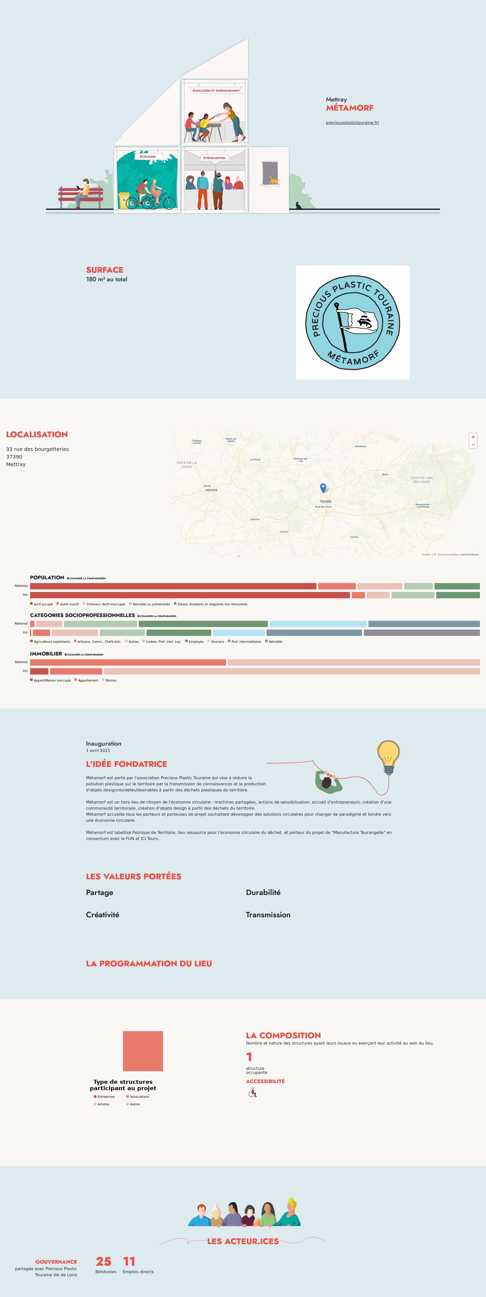 Métamorf est porté par l'association Precious Plastic Touraine qui vise à réduire la pollution plastique sur le territoire par la transmission de connaissances et la production d'objets design/durables/desirables à partir des déchets plastiques du territoire.