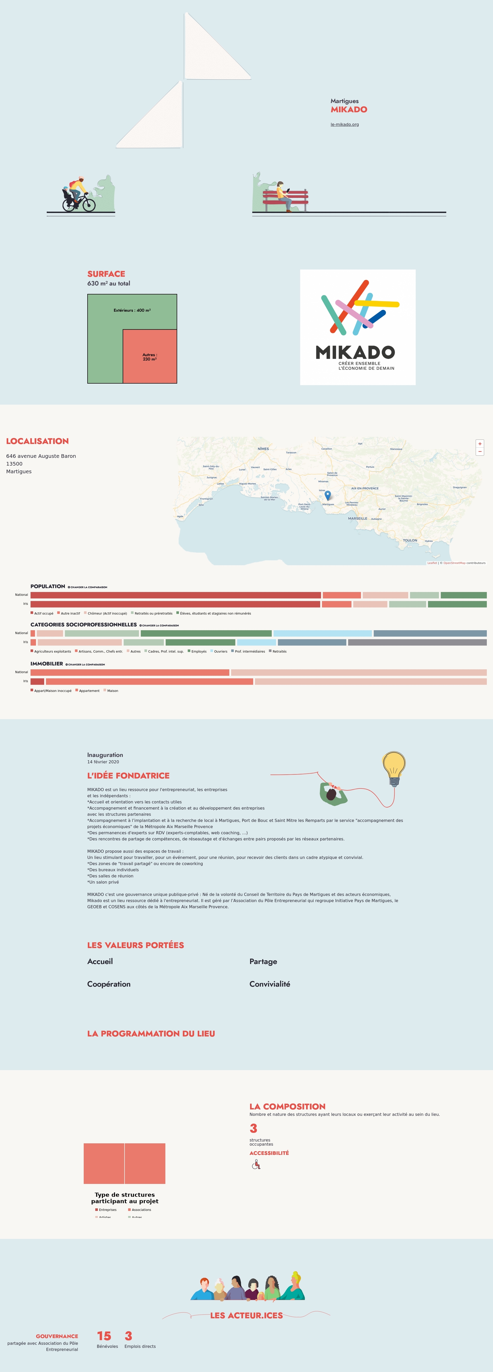 MIKADO c'est une gouvernance unique publique-privé : Né de la volonté du Conseil de Territoire du Pays de Martigues et des acteurs économiques, Mikado est un lieu ressource dédié à l'entrepreneuriat. Il est géré par l’Association du Pôle Entrepreneurial qui regroupe Initiative Pays de Martigues, le GEOEB et COSENS aux côtés de la Métropole Aix Marseille Provence.