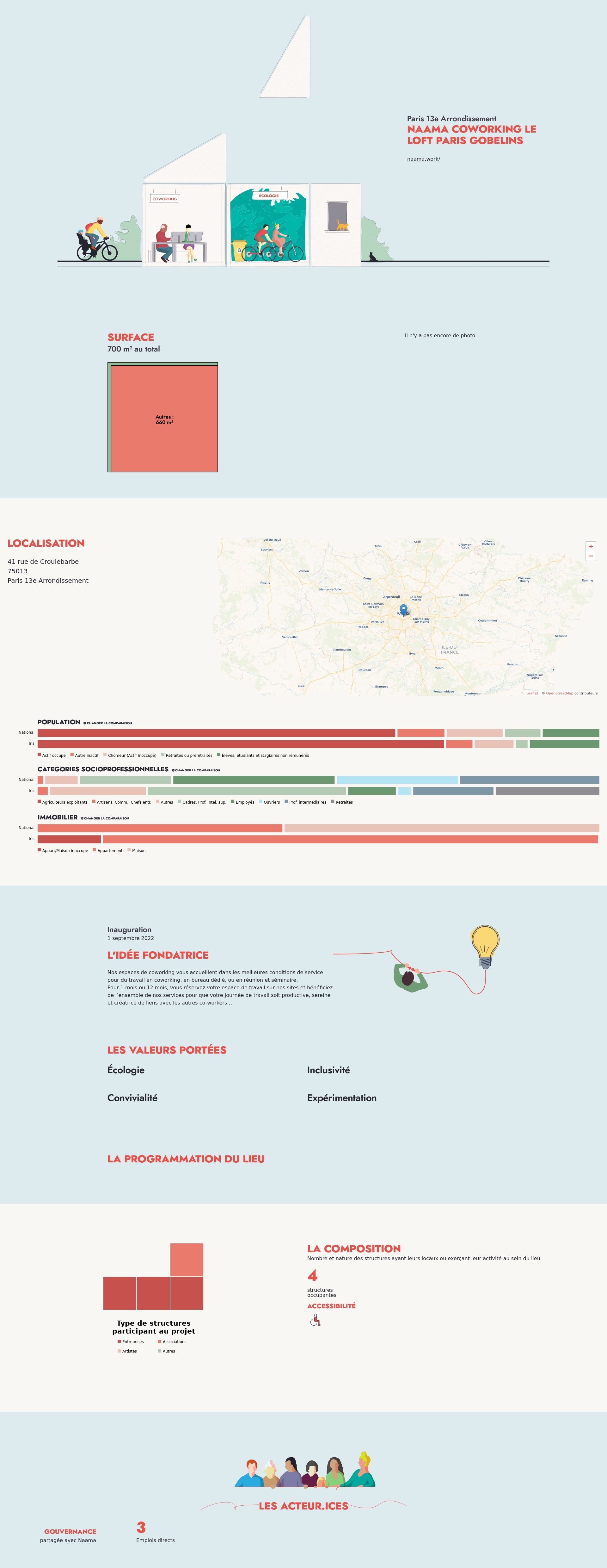 Nombre et nature des structures ayant leurs locaux ou exerçant leur activité au sein du lieu.