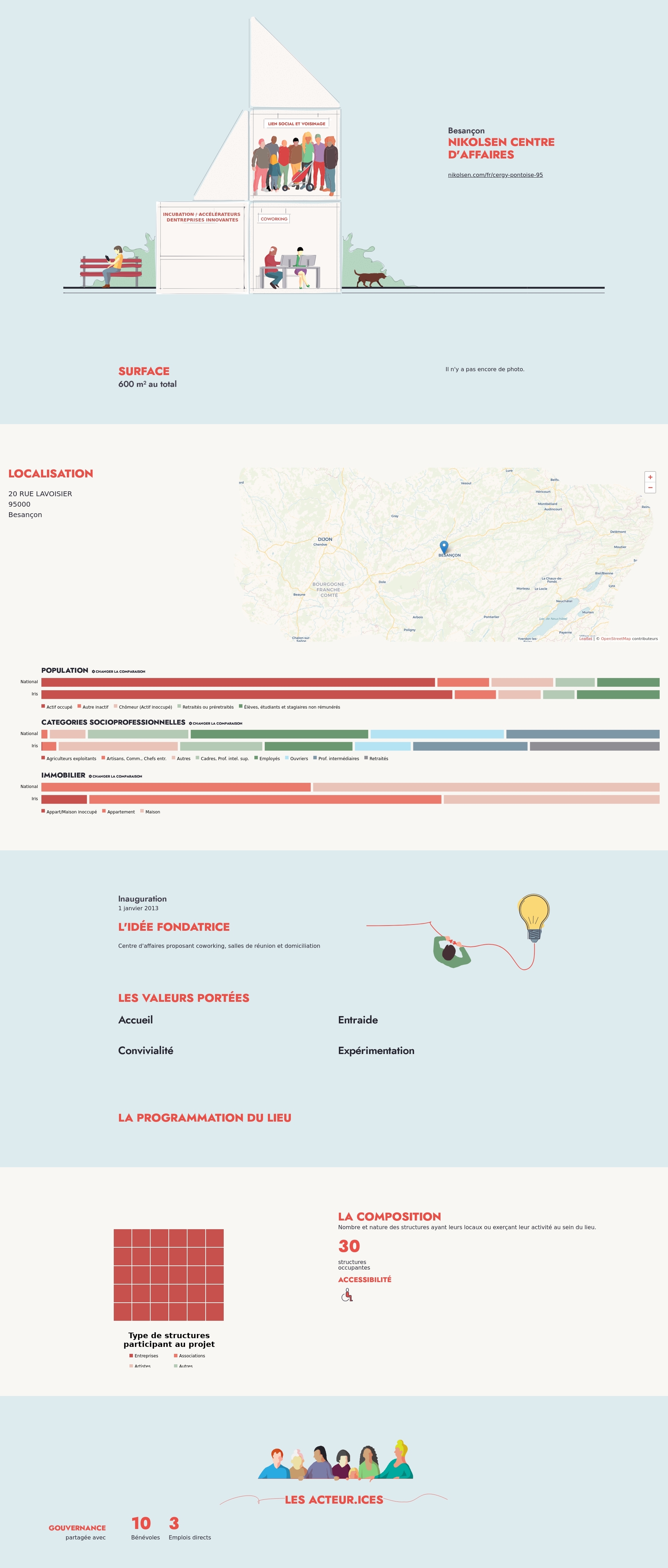 Nombre et nature des structures ayant leurs locaux ou exerçant leur activité au sein du lieu.