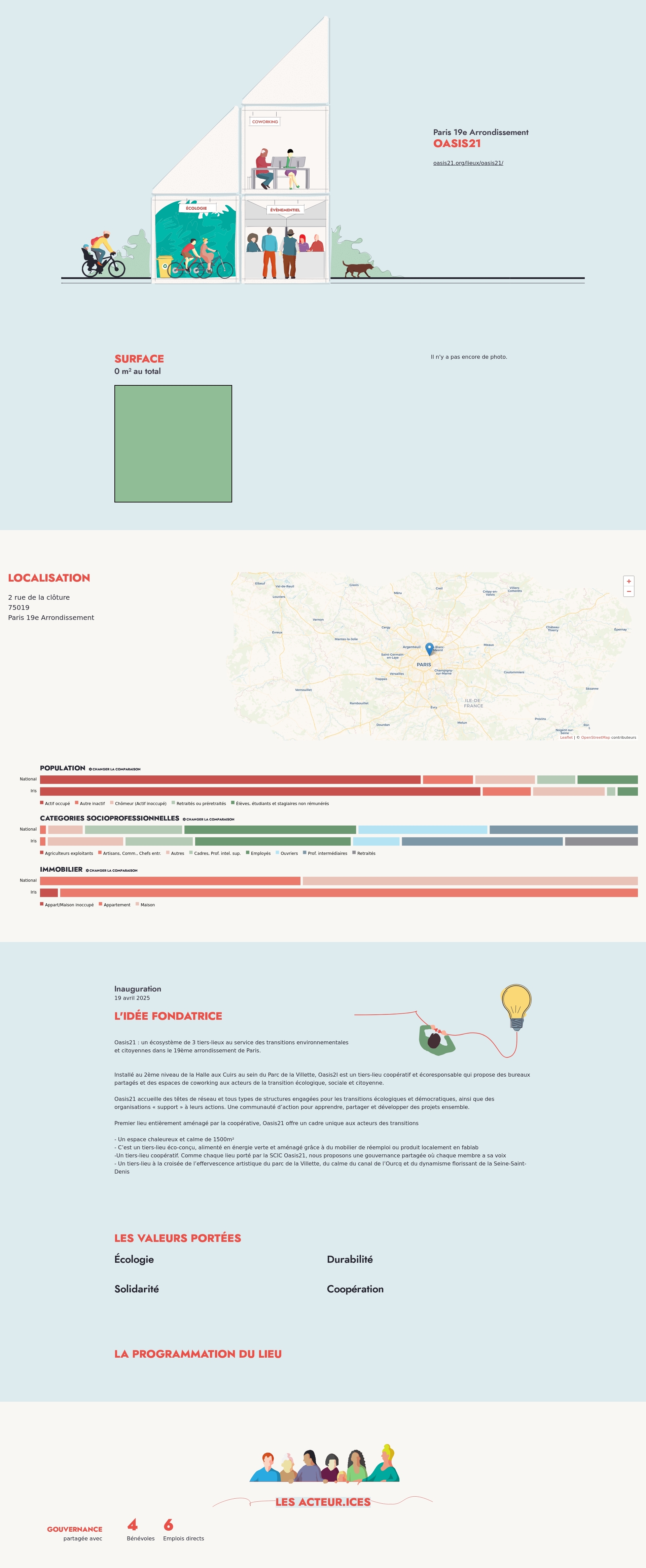 Oasis21 : un écosystème de 3 tiers-lieux au service des transitions environnementales et citoyennes dans le 19ème arrondissement de Paris.