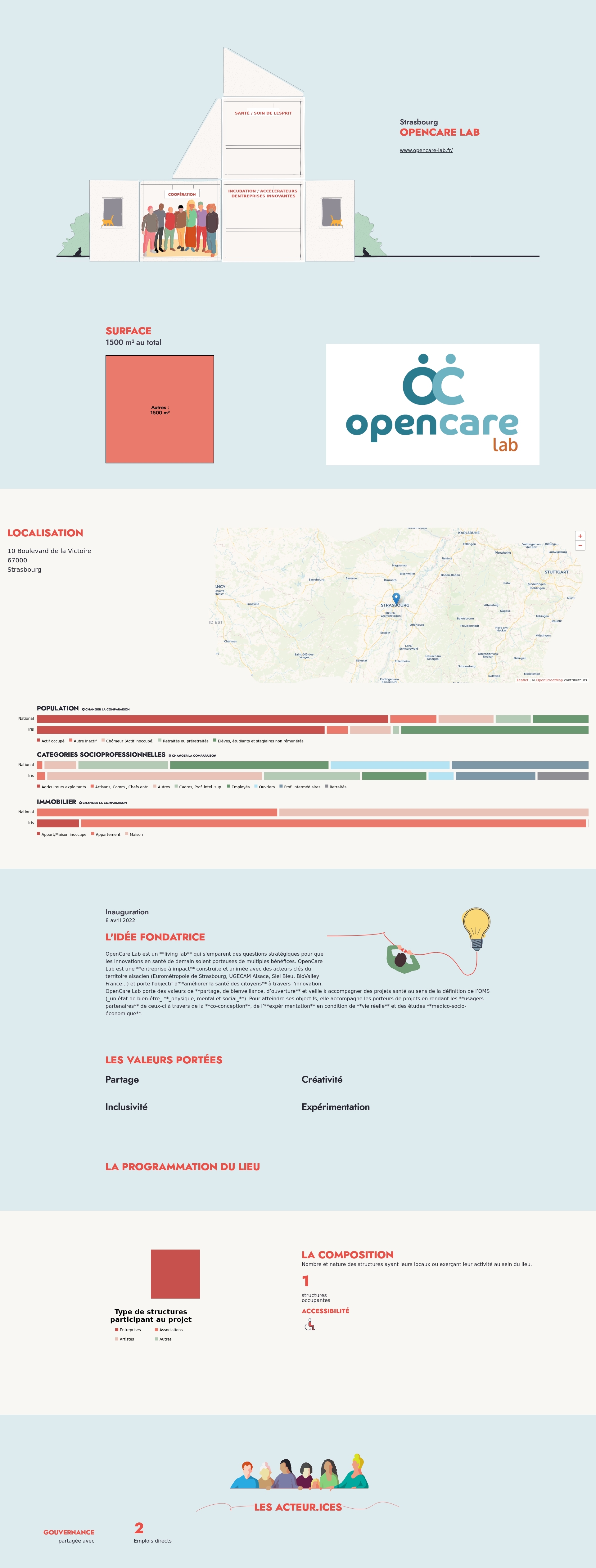 OpenCare Lab est un **living lab** qui s'emparent des questions stratégiques pour que les innovations en santé de demain soient porteuses de multiples bénéfices. OpenCare Lab est une **entreprise à impact** construite et animée avec des acteurs clés du territoire alsacien (Eurométropole de Strasbourg, UGECAM Alsace, Siel Bleu, BioValley France...) et porte l'objectif d'**améliorer la santé des citoyens** à travers l'innovation.