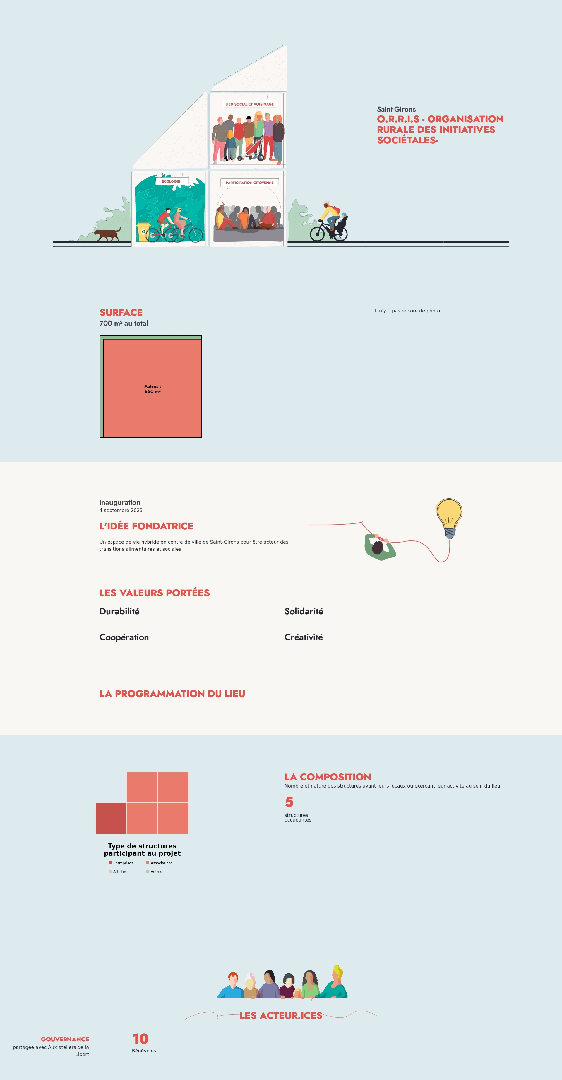 Nombre et nature des structures ayant leurs locaux ou exerçant leur activité au sein du lieu.