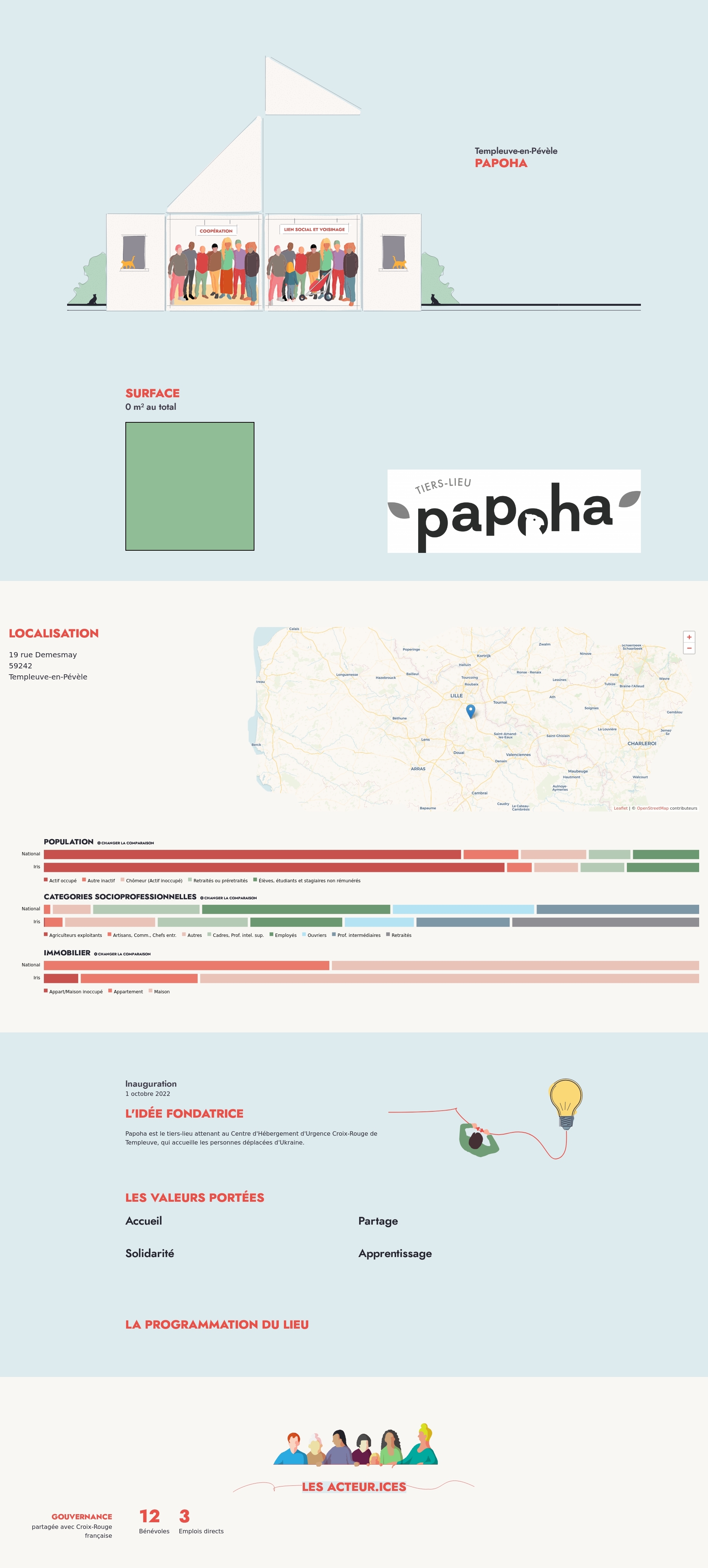 Papoha est le tiers-lieu attenant au Centre d'Hébergement d'Urgence Croix-Rouge de Templeuve, qui accueille les personnes déplacées d'Ukraine.