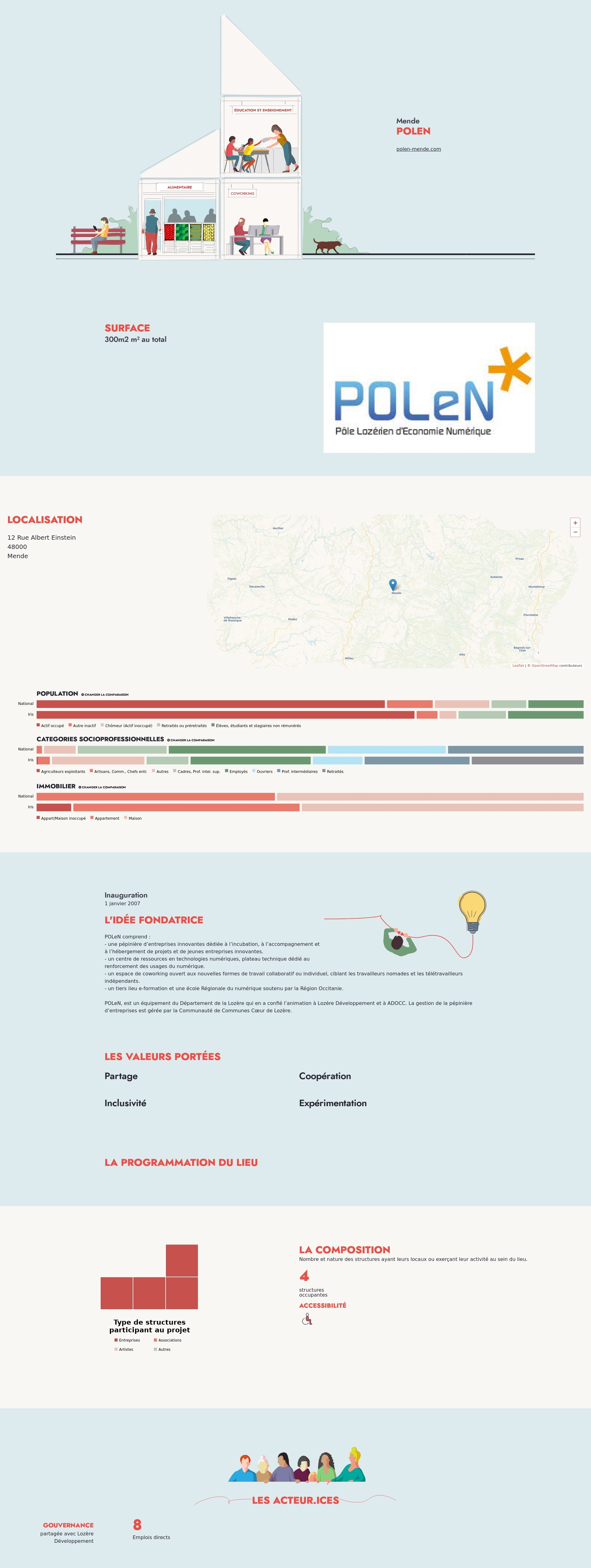 POLeN, est un équipement du Département de la Lozère qui en a confié l’animation à Lozère Développement et à ADOCC. La gestion de la pépinière d’entreprises est gérée par la Communauté de Communes Cœur de Lozère.