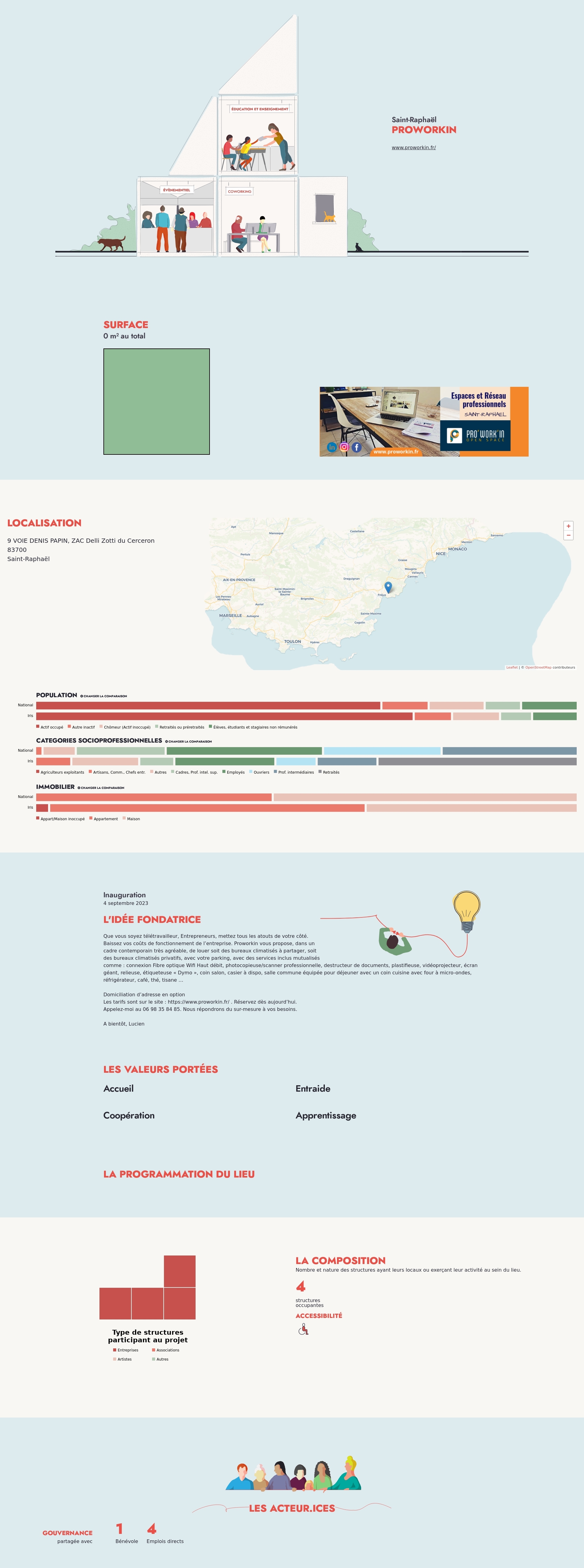 Nombre et nature des structures ayant leurs locaux ou exerçant leur activité au sein du lieu.