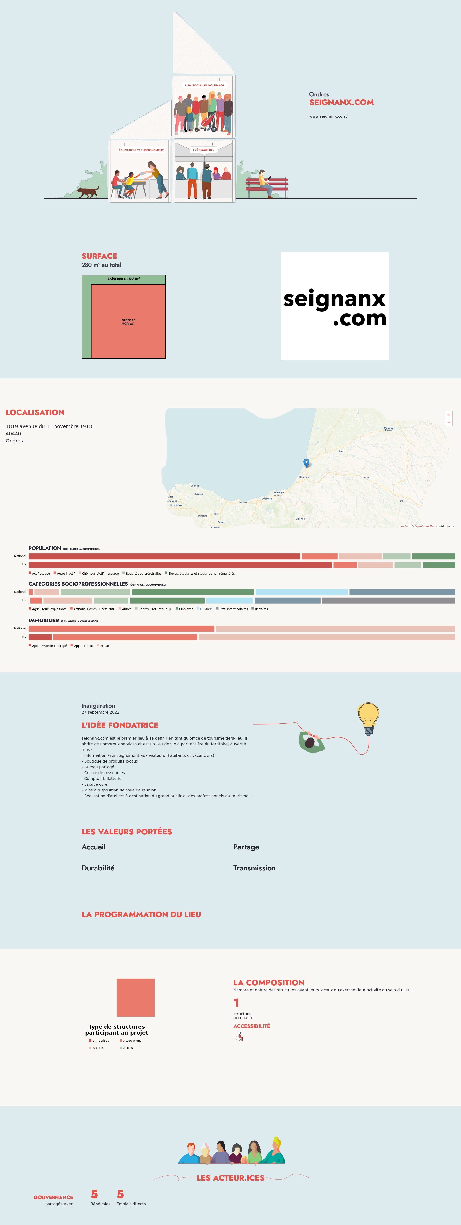seignanx.com est le premier lieu à se définir en tant qu'office de tourisme tiers-lieu. Il abrite de nombreux services et est un lieu de vie à part entière du territoire, ouvert à tous :