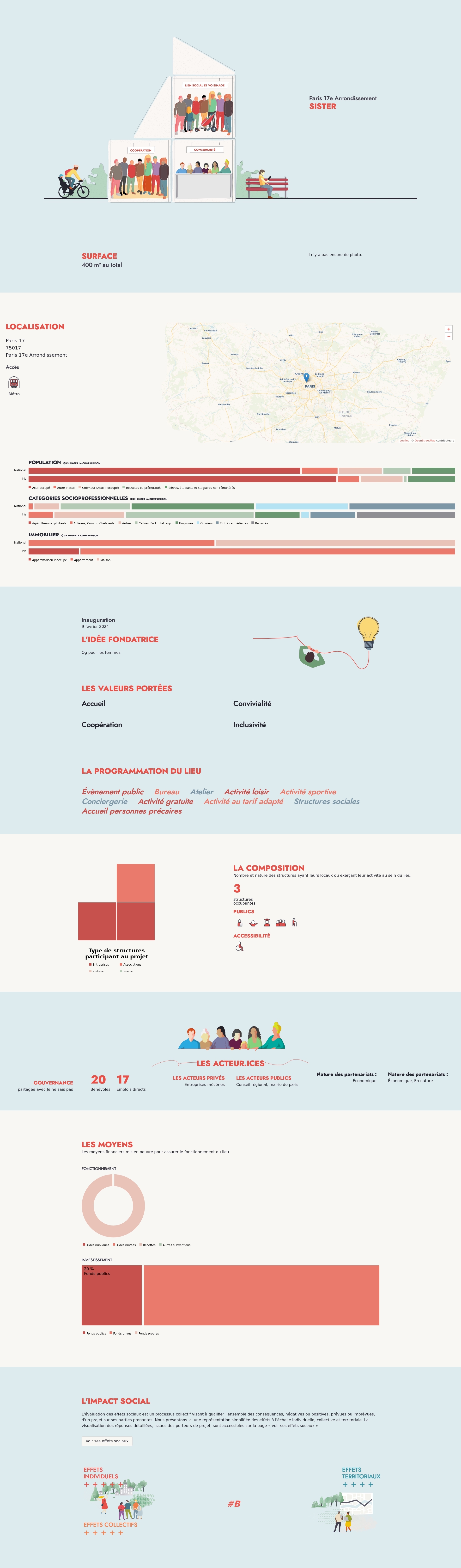 Nombre et nature des structures ayant leurs locaux ou exerçant leur activité au sein du lieu.
