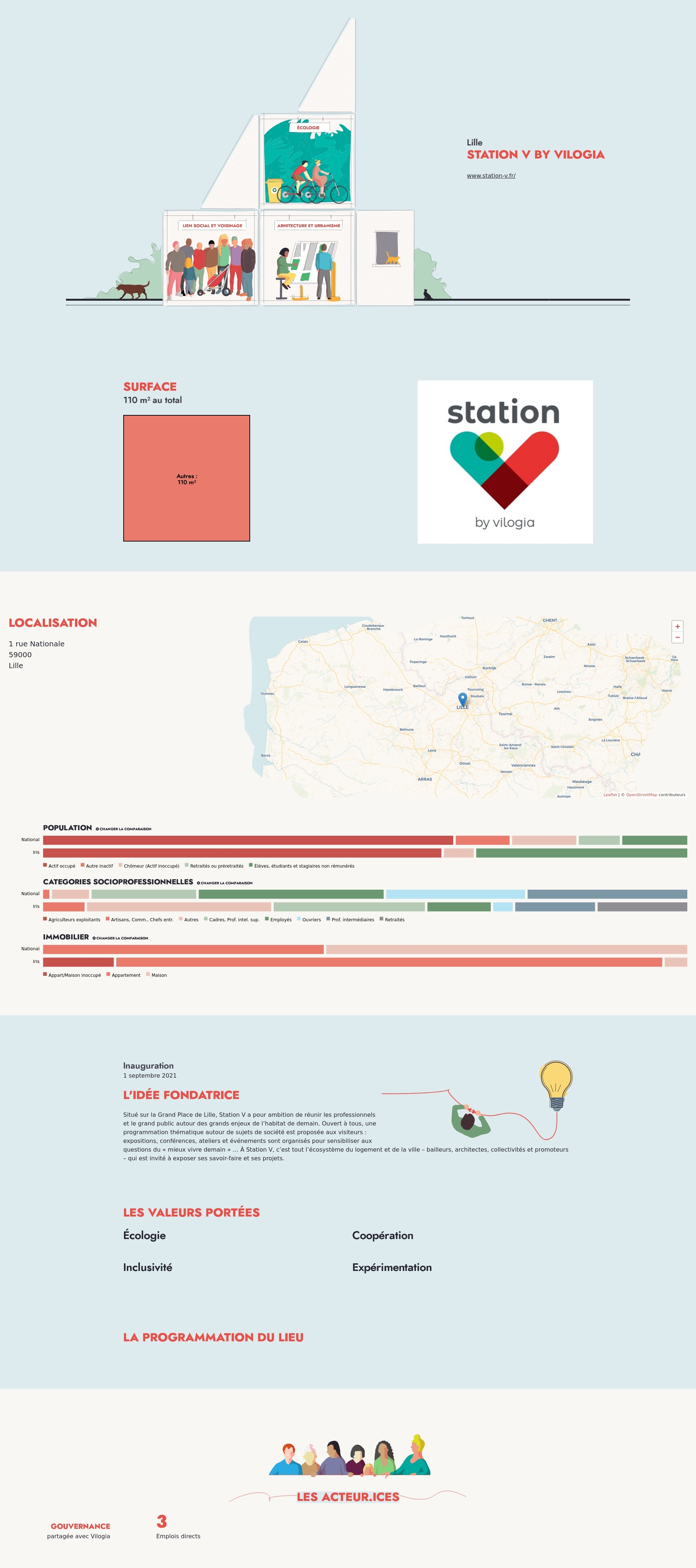 Situé sur la Grand Place de Lille, Station V a pour ambition de réunir les professionnels et le grand public autour des grands enjeux de l’habitat de demain. Ouvert à tous, une programmation thématique autour de sujets de société est proposée aux visiteurs : expositions, conférences, ateliers et événements sont organisés pour sensibiliser aux questions du « mieux vivre demain » … À Station V, c’est tout l’écosystème du logement et de la ville – bailleurs, architectes, collectivités et promoteurs – qui est invité à exposer ses savoir-faire et ses projets.