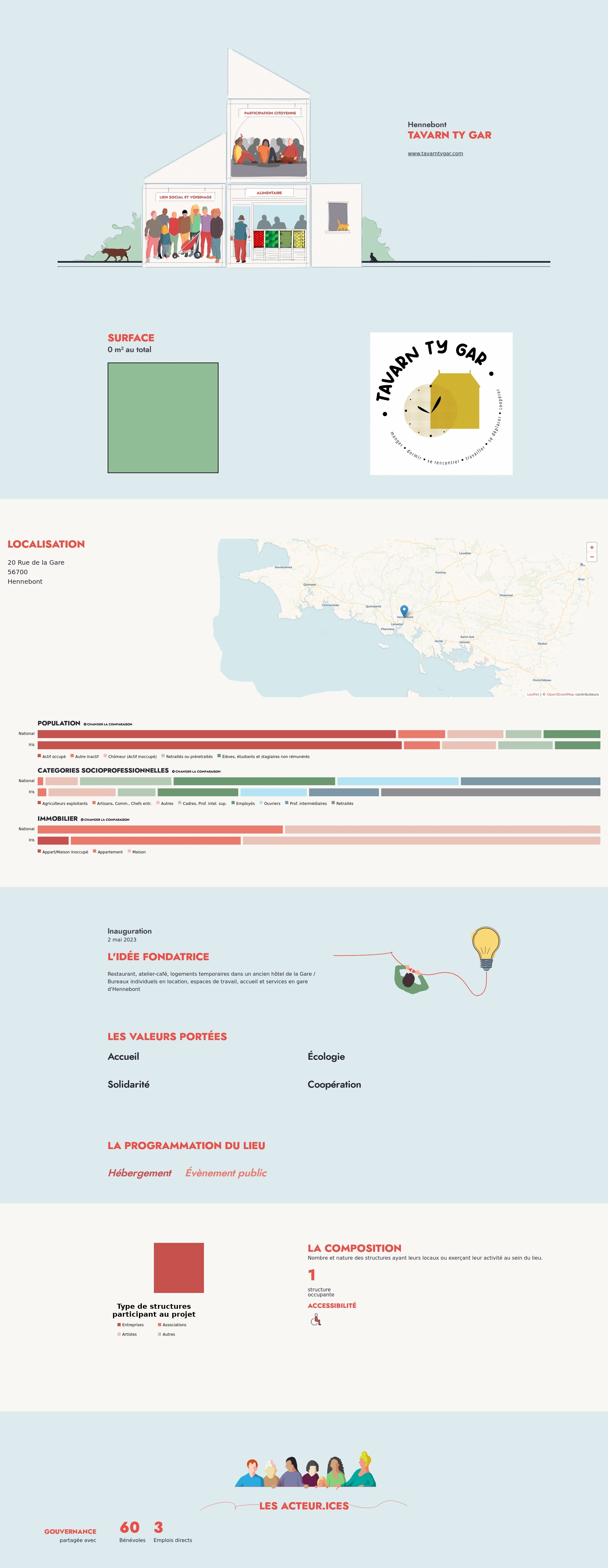 Restaurant, atelier-café, logements temporaires dans un ancien hôtel de la Gare / Bureaux individuels en location, espaces de travail, accueil et services en gare d'Hennebont