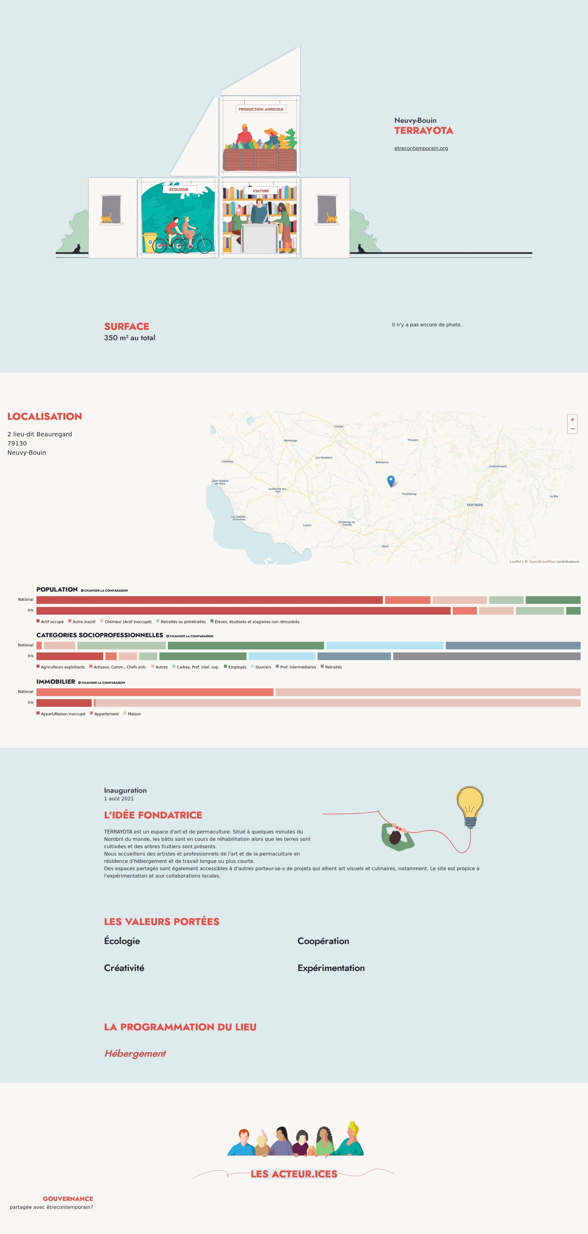 TERRAYOTA est un espace d'art et de permaculture. Situé à quelques minutes du Nombril du monde, les bâtis sont en cours de réhabilitation alors que les terres sont cultivées et des arbres fruitiers sont présents.