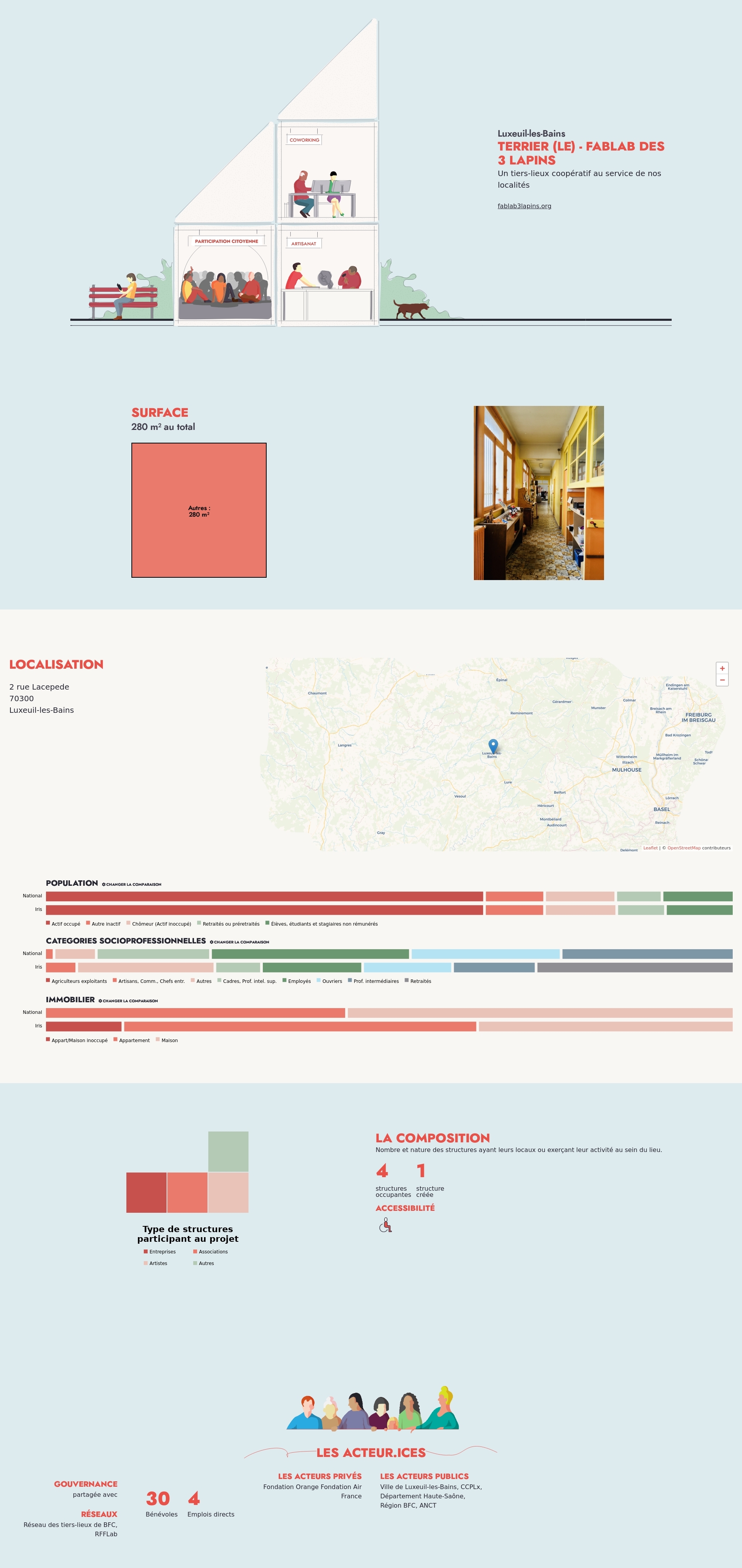 Nombre et nature des structures ayant leurs locaux ou exerçant leur activité au sein du lieu.