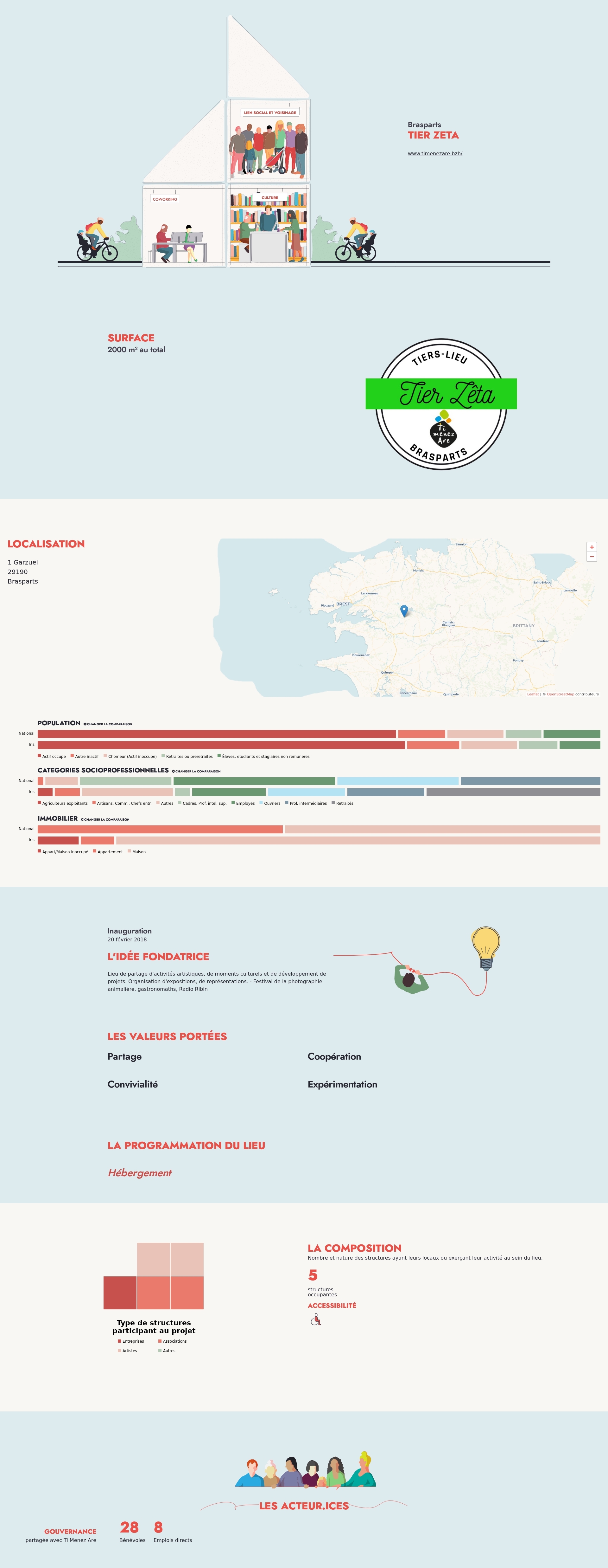 Nombre et nature des structures ayant leurs locaux ou exerçant leur activité au sein du lieu.