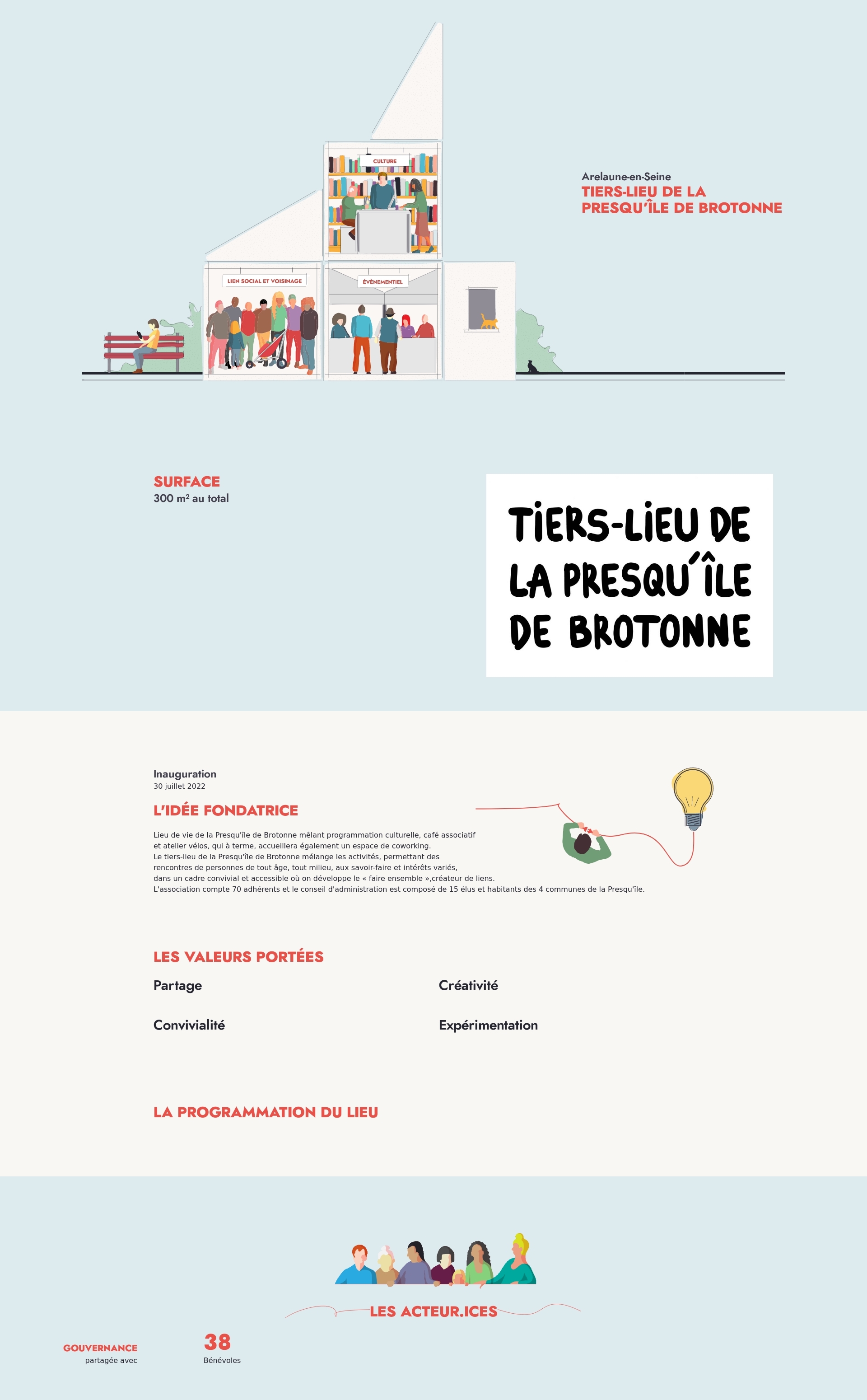 Lieu de vie de la Presqu'île de Brotonne mêlant programmation culturelle, café associatif et atelier vélos, qui à terme, accueillera également un espace de coworking.