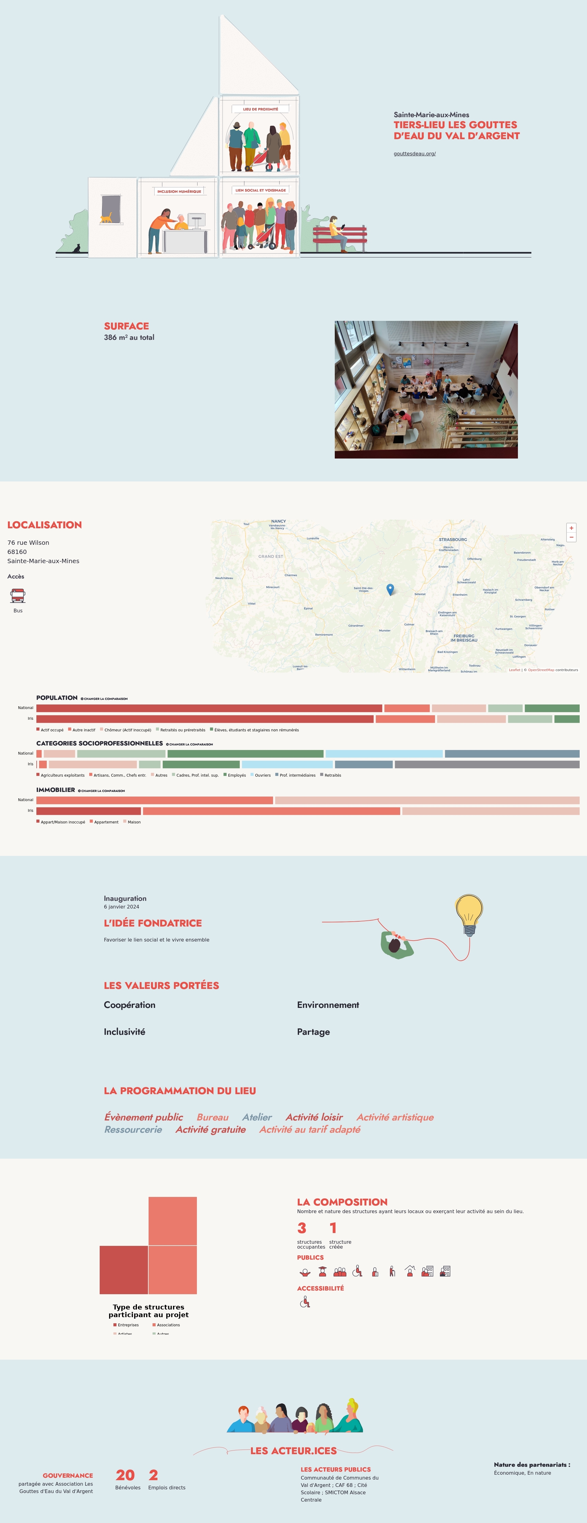 Nombre et nature des structures ayant leurs locaux ou exerçant leur activité au sein du lieu.