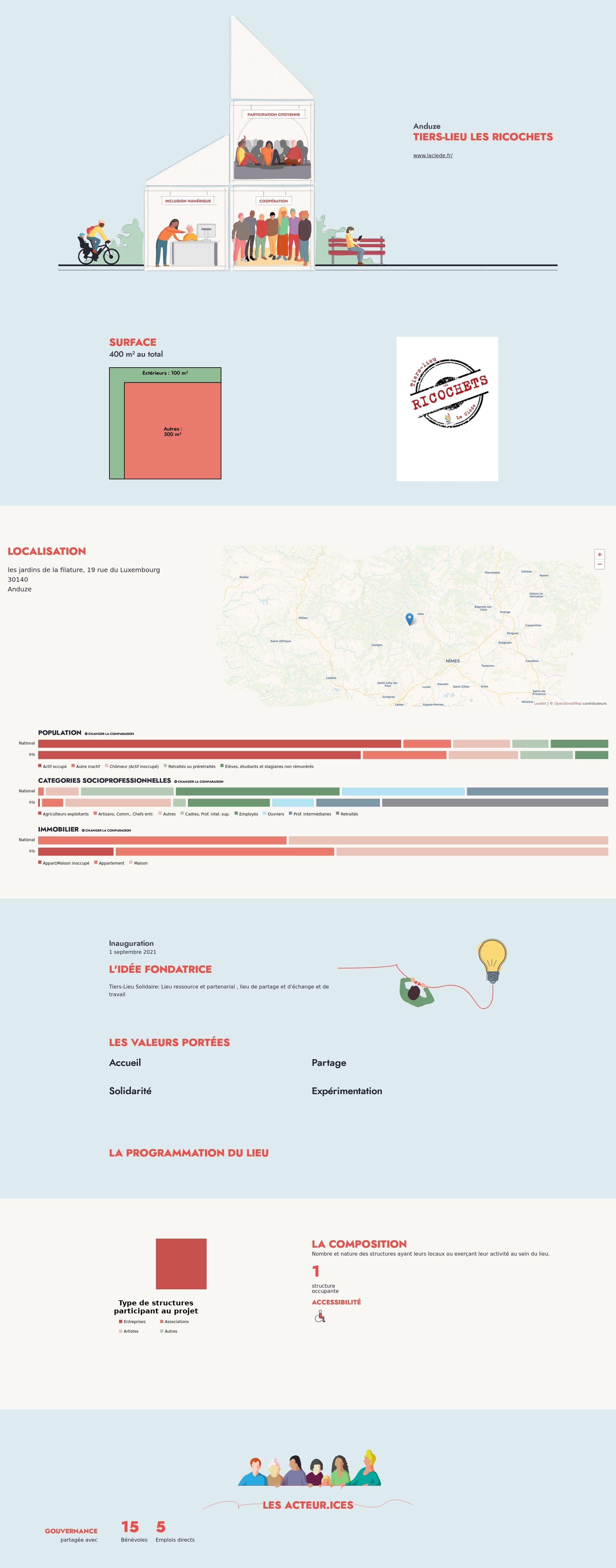 Nombre et nature des structures ayant leurs locaux ou exerçant leur activité au sein du lieu.