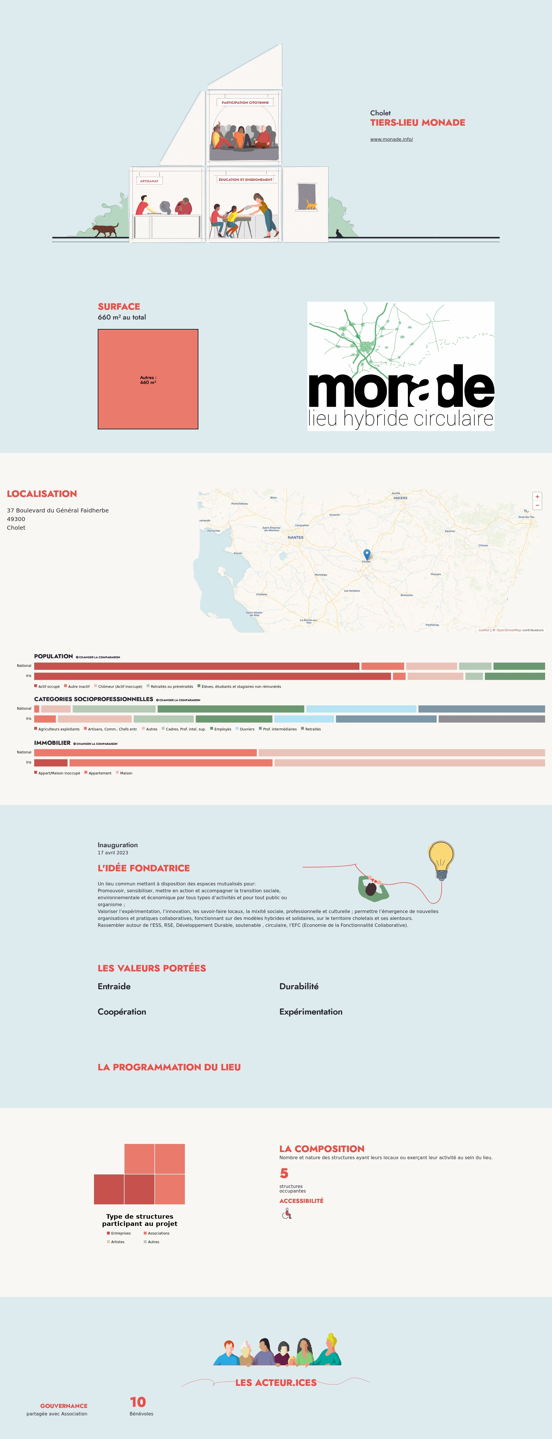 Valoriser l’expérimentation, l’innovation, les savoir-faire locaux, la mixité sociale, professionnelle et culturelle ; permettre l’émergence de nouvelles organisations et pratiques collaboratives, fonctionnant sur des modèles hybrides et solidaires, sur le territoire choletais et ses alentours.