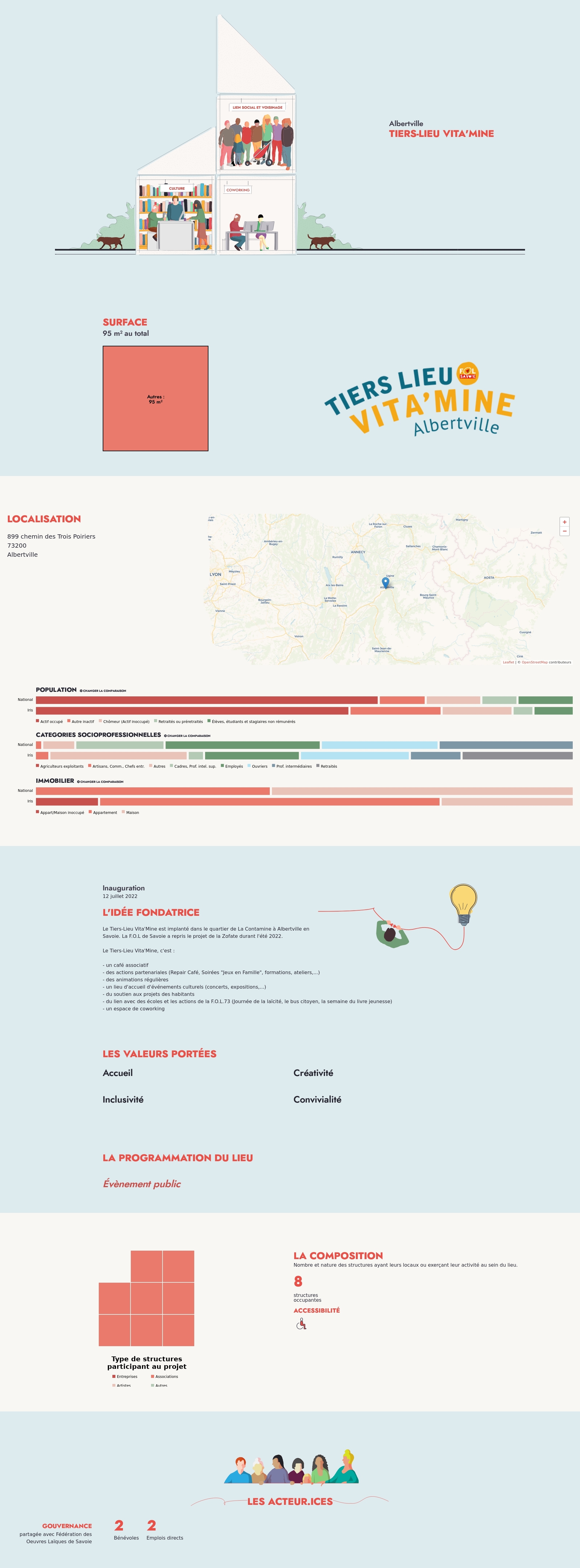 Le Tiers-Lieu Vita'Mine est implanté dans le quartier de La Contamine à Albertville en Savoie. La F.O.L de Savoie a repris le projet de la Zofate durant l'été 2022.