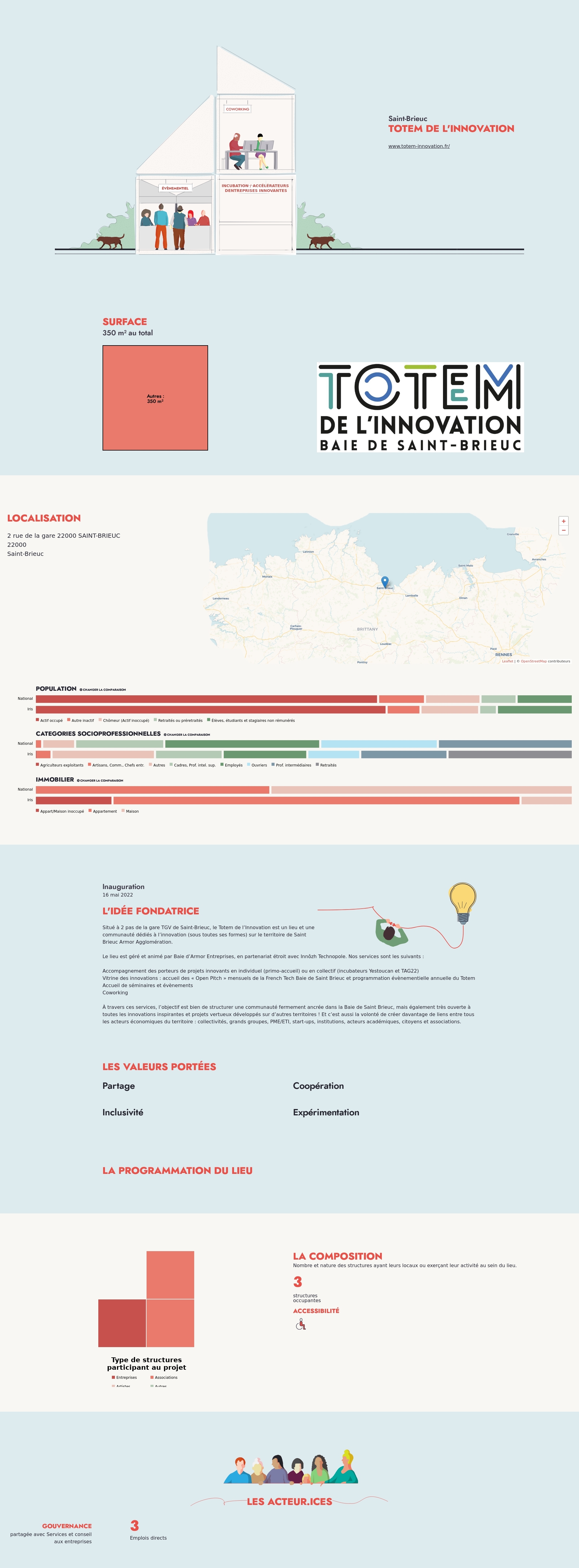Situé à 2 pas de la gare TGV de Saint-Brieuc, le Totem de l’Innovation est un lieu et une communauté dédiés à l’innovation (sous toutes ses formes) sur le territoire de Saint Brieuc Armor Agglomération.
