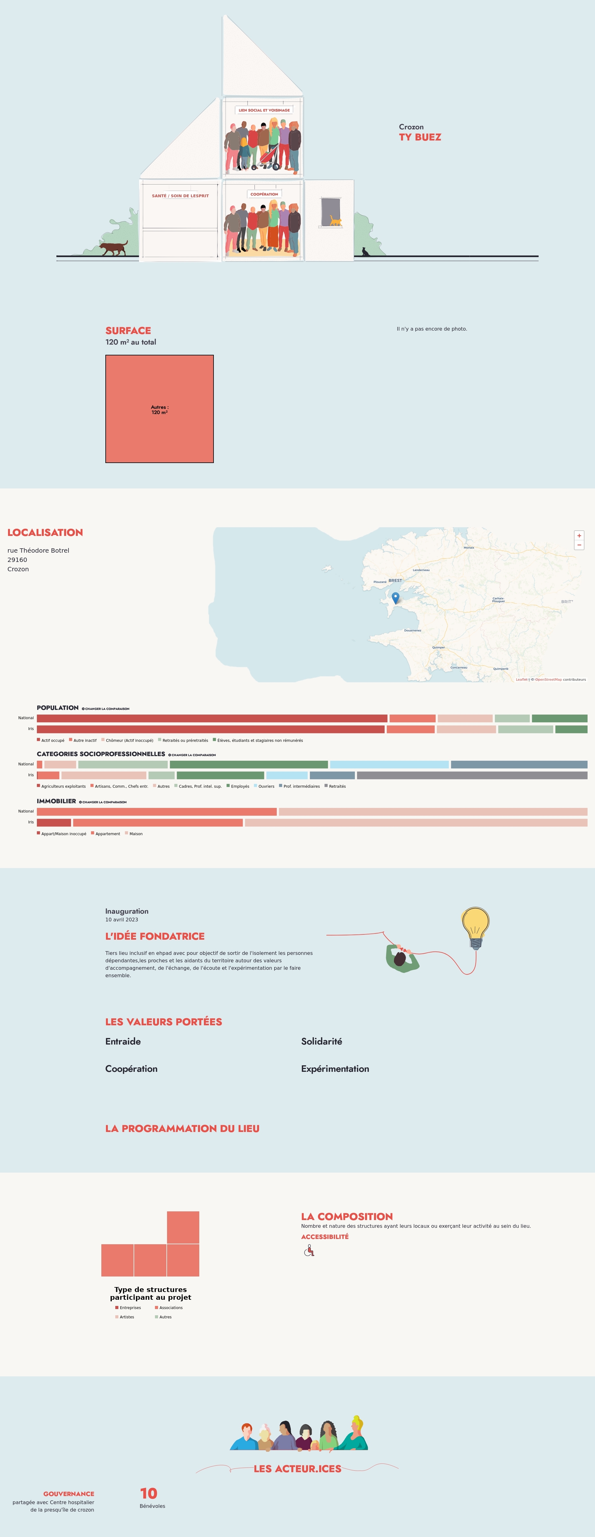 Nombre et nature des structures ayant leurs locaux ou exerçant leur activité au sein du lieu.