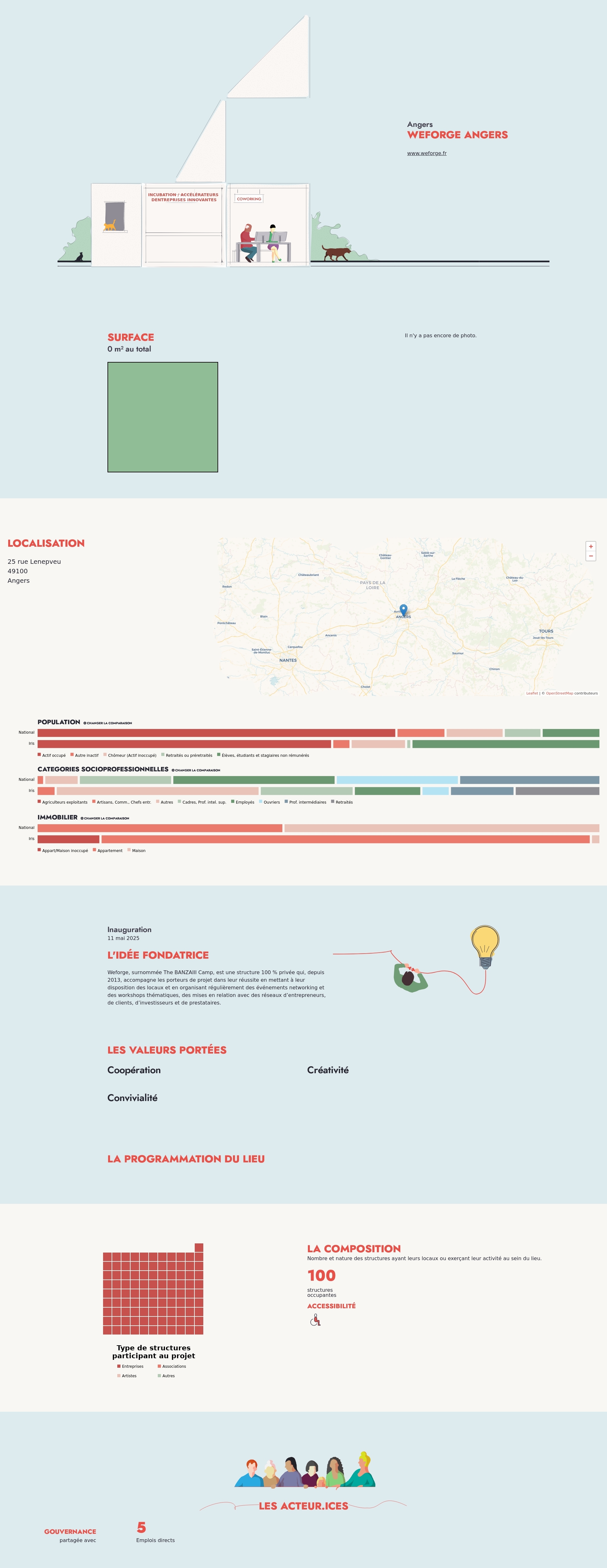 Nombre et nature des structures ayant leurs locaux ou exerçant leur activité au sein du lieu.