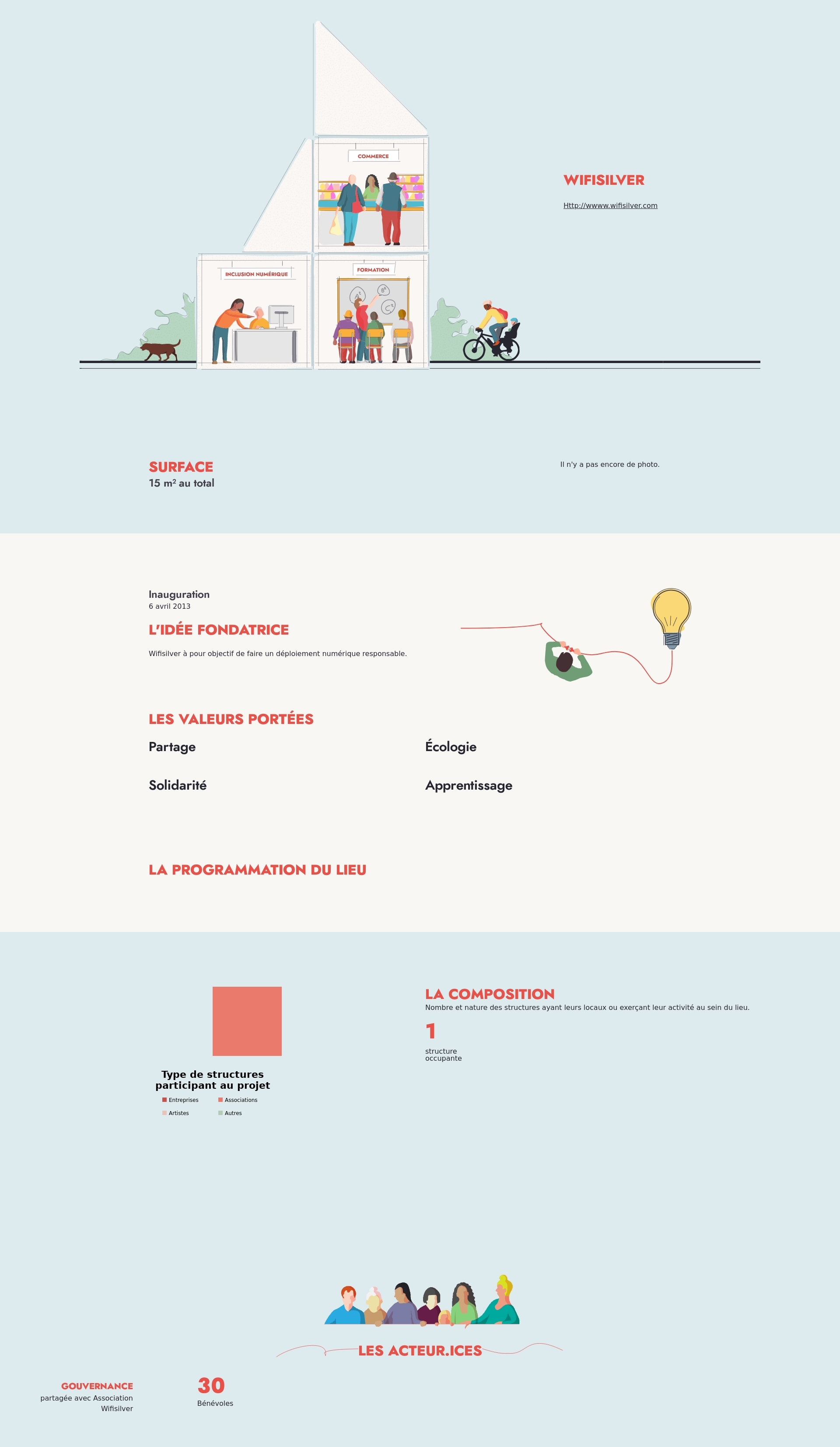 Nombre et nature des structures ayant leurs locaux ou exerçant leur activité au sein du lieu.