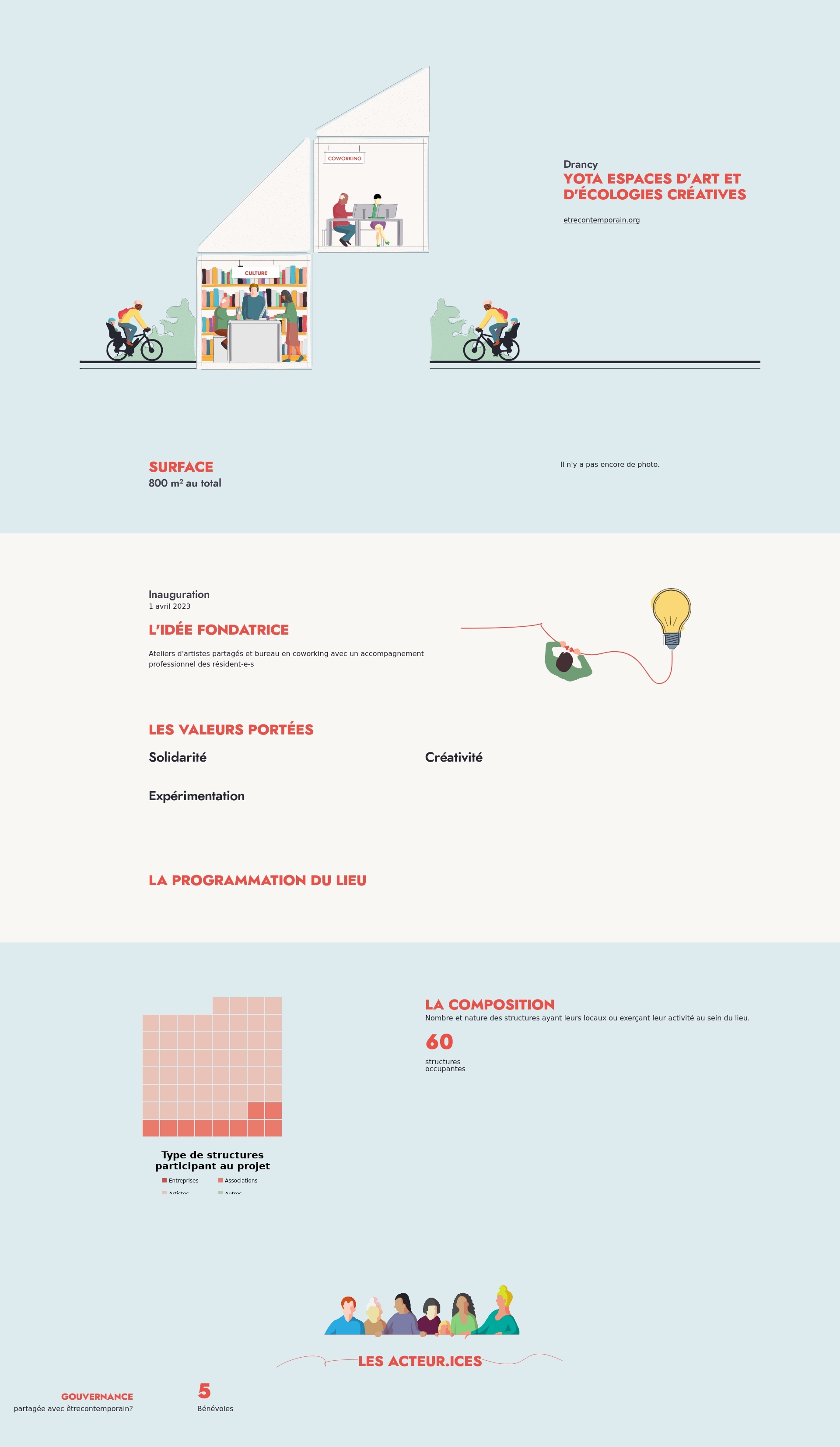 Nombre et nature des structures ayant leurs locaux ou exerçant leur activité au sein du lieu.