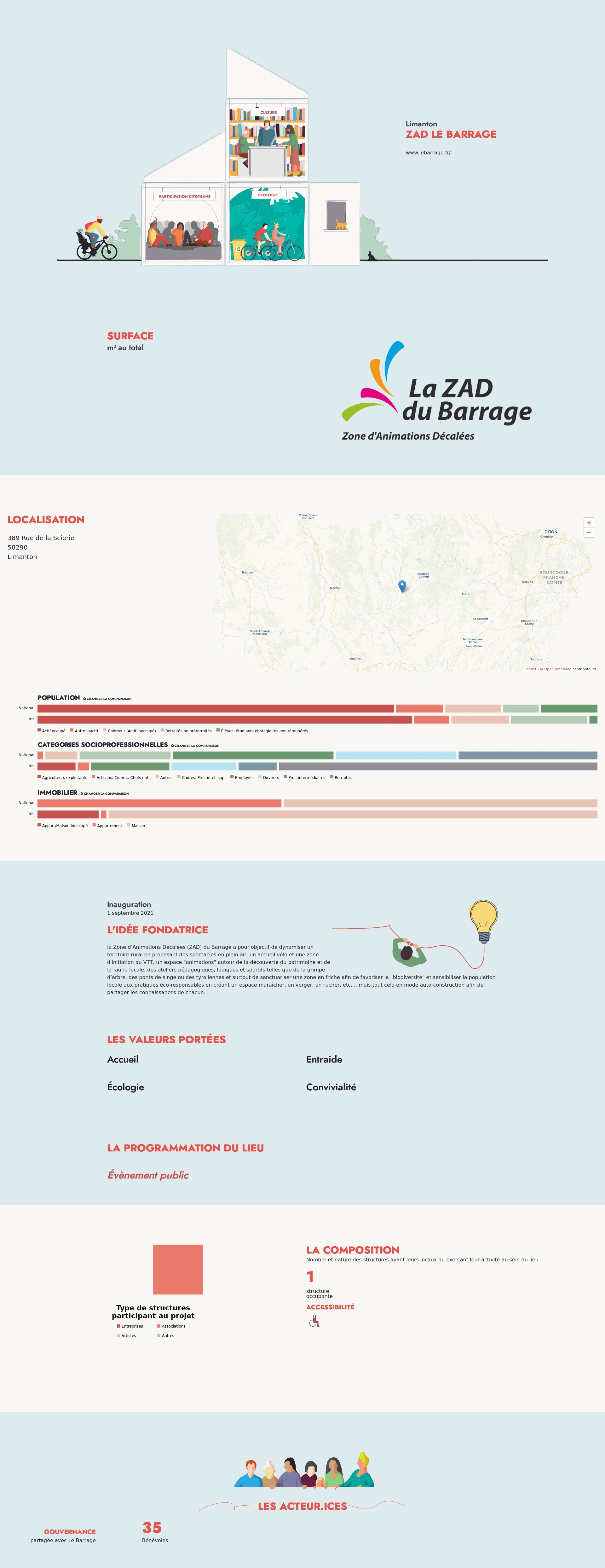 la Zone d’Animations Décalées (ZAD) du Barrage a pour objectif de dynamiser un territoire rural en proposant des spectacles en plein air, un accueil vélo et une zone d'initiation au VTT, un espace "animations" autour de la découverte du patrimoine et de la faune locale, des ateliers pédagogiques, ludiques et sportifs telles que de la grimpe d’arbre, des ponts de singe ou des tyroliennes et surtout de sanctuariser une zone en friche afin de favoriser la "biodiversité" et sensibiliser la population locale aux pratiques éco-responsables en créant un espace maraîcher, un verger, un rucher, etc.... mais tout cela en mode auto-construction afin de partager les connaissances de chacun.